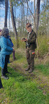 So entdeckten die 23 Teilnehmer zusammen mit Franz Reiter ein Kiebitzpaar auf einem angrenzenden Acker, ein exponiertes Rotkehlchen beim Singen sowie zwei Kleiber beim Einfliegen in ein Spechtloch.